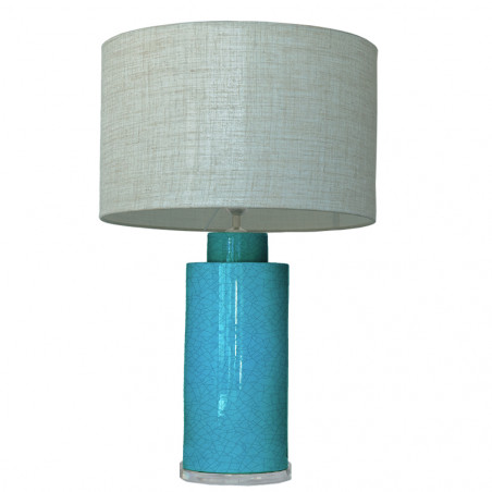 Add more style to your home with this handcrafted ceramic lamp. Ceramic lamp 67cm high. Choose your favorite color and combine it with a 40cm x 40cm x 25cm linen lampshade. Base is made of methacrylate