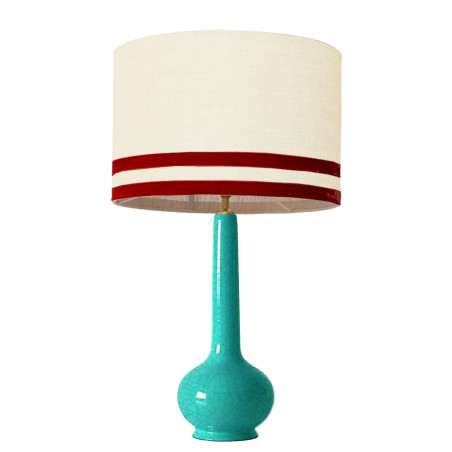Ceramic lamps in craquelure and a wide variety of colors. Bring the style you wish for your home, office, etc. This lamp includes a Svel Toasted Linen shade with velvet strips in four available colours. The shade has a dimension of 40 x 40 x 25 centimeters and the entire lamp is 72 centimeters tall.