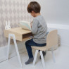 Redesigned, with sense for nostalgia, Tucan Home chooses to refresh elementary "old school" furniture. A desk and chair for the little ones at the age of 6-10 years old. The designer left out the typical table legs and added an aluminum base. These fine legs - in mint, white, blue, pink, yellow, green, rotorange or black - are light and easy to move. Ideal for regular changing settings in your living or kids room. There is attention for every detail, the notch and pencil holder in the tabletop have the same colors as the base. There is storage space underneath the table top. The tabletop and seat are made out of birch plywood.