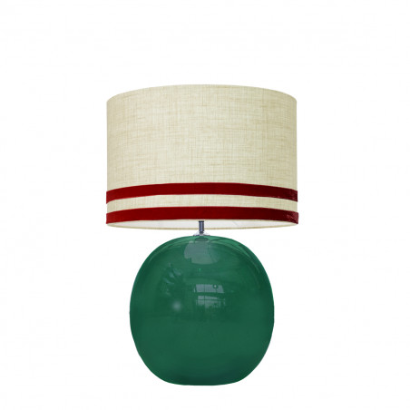 1709 - Lampara con pantalla Lino Svel Tostado, cinta terciopelo (Altura 56cm)