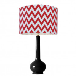 Lámpara de cerámica de varios colores y craquelados con pantalla de estilo Chevrone de varios colores. La altura de la cerámica es de 47cm y la anchura es de 21cm. La Pantalla mide 40x40x25h.