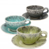Juego de cafe en gres fino en gris, amarillo y turquesa
