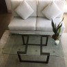 Estructura de hierro forjado (tubo de 40x40) acabado pintura en polvo con aplicación electrostática a 200° en varios colores, con cristal de 10mm con cantos pulidos y esquinas redondeadas de 20mm de radio.