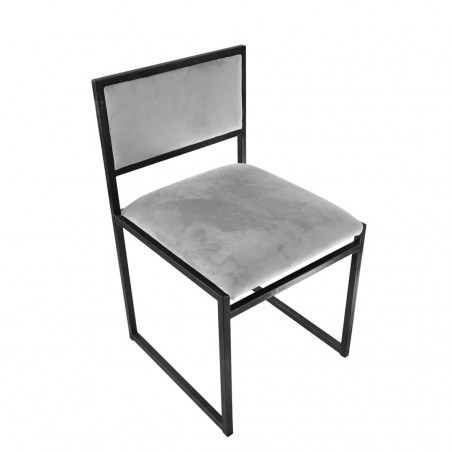 Silla de estructura de hierro con pintura al horno en color negro y terciopelo con altura de asiento de 46cm más 2cm aproximados de tapizado. Disponibles 3 colores de terciopelo.