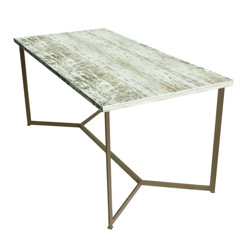 Mesa rectangular de comedor con un estilo sencillo y de una estructura sólida. 200x100 alto 75 con tablero de madera MDF o marmol de grosor 3 cm. Pintura en polvo con aplicación electrostática a 200° acabado en cuatro colores posibles: marrón óxido, blanco, oro o negro.